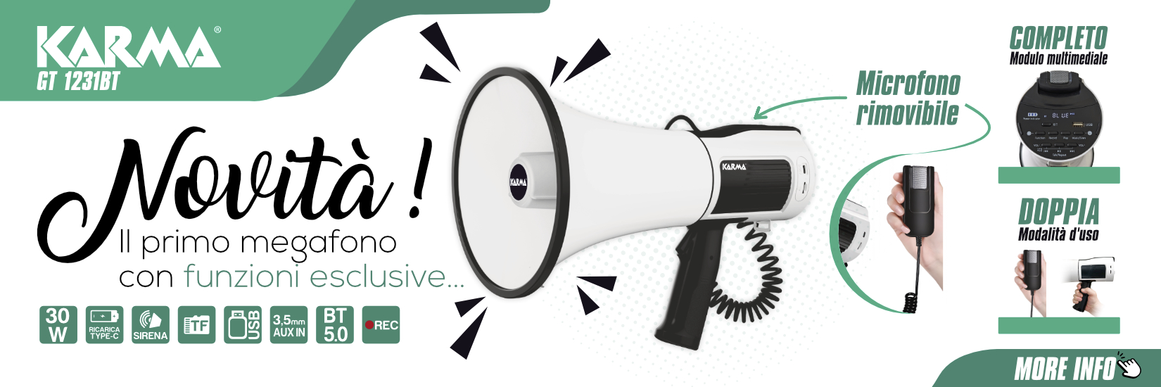Megafono 30W ricaricabile