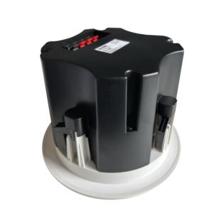 In-ceiling speaker with 4 clamp "easy fix" system.  It offers an excellent performance in music reproduction. It is endowed with a transformer for connection to 100V systems.  The edgeless grid can be attached  magnetically to the speaker for an agreable aesthetic result. The maximum power is 20W.
