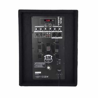 The subwoofer is equipped with a 12 "woofer, and is equipped with bluetooth connection, SD / USB reader, remote control, treble / bass and volume control, as well as volume control and Echo of the microphone input. It also has two large handles for easy transport. , cup for mounting on support and is covered in particularly resistant fabric.