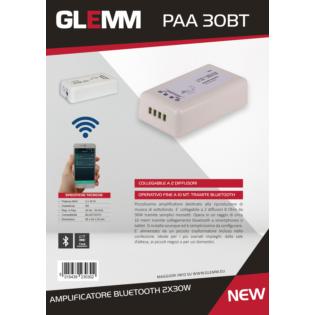 Very small amplifier intended to play background music. It can be connected to 2 x 8 Ohm 30W speakers through simple terminals. It operates within a range of about 10 meters via bluetooth connection to smartphones or tablets. It can be installed anywhere and is very easy to set up. It is suitable for the most varied situations: from waiting rooms to small shops, but also for domestic use.