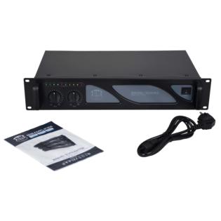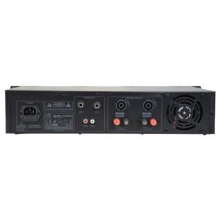 Stereo power amplifier capable of generating a maximum power of 500W per channel. Fits in standard 19" racks with 2U footprint. It has RCA and Jack 6.3mm type inputs, while the outputs for the right and left channels are SPEAKON type or via normal binding posts.