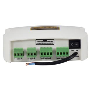 Amplifier designed for installation in false ceilings. It can support up to 4 speakers operating at 8 Ohms with a power of 4x30W. It can be controlled from a smartphone or tablet with a simple bluetooth 5.0 connection.  If it is not connected to bluetooth it automatically handles a line signal.  Small and versatile, it is unique of its kind.