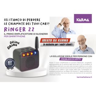 Questo apparecchio è stato progettato per persone deboli di udito che tendono a non rispondere al telefono non sentendolo squillare. RINGER 22 è una potente suoneria impostabile su 5 diversi suoni, 6 livelli di volume e 4 intensità luminosa dei led.