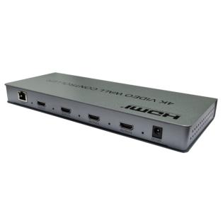 Piccolo apparecchio al quale collegare un segnale in ingresso di tipo HDMI o DVI e in grado di suddividerlo su più schermi (2,3 o 4 schermi) tramite prese HDMI. Le combinazioni possibili sono: 1x1, 1x2, 1x3, 1x4, 2x1, 2x2, 3x1, 4x1. Il segnale in ingresso potrà essere con una risoluzione massima 4K/30Hz (3840x2160p). Il segnale in uscita avrà una risoluzione di 1920x1080P a 60Hz. Una presa dii tipo 3,5mm consente di estrapolare l'audio da inviare ad amplificatri o cuffie.