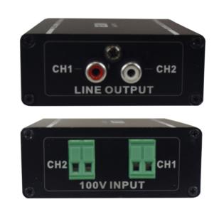 In questo modo avrete la possibilità di inviare su lunghe distanze un segnale 100V da un amplificatore ad un altro e ampliare così la copertura audio. Non richiede alcuna alimentazione. La confezione include cavo RCA.