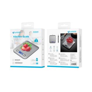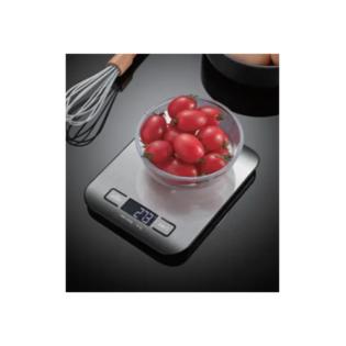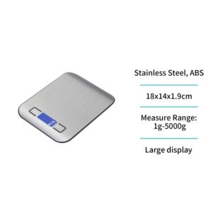 In grado di misurare pesi fino a 5 Kg con accuratezza di 1gr. E' impostabile su sei unità di misura (Kg - g - ml - oz - lb - milk ml) e dispone di sensori per la massima precisione nella pesata. Dal design ultrapiatto si integra perfettamente in ogni cucina. Il display mostra chiaramente il peso ed è alimentato da 2 batterie ministilo AAA (non incluse).