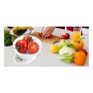 In grado di misurare pesi fino a 5 Kg con accuratezza di 1gr. E' impostabile su tre scale di misura (g - oz - lb) e dispone di sensori per la massima precisione nella pesata. E' fornito con un cestello superiore in plastica facilemnte lavabile. Il display mostra chiaramente il peso ed è alimentato da 2 batterie ministilo AAA (non incluse).