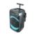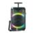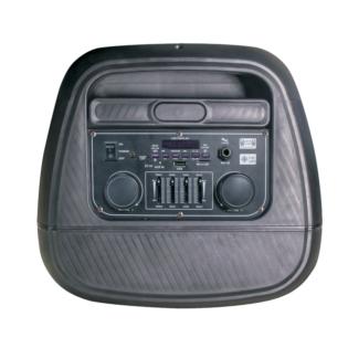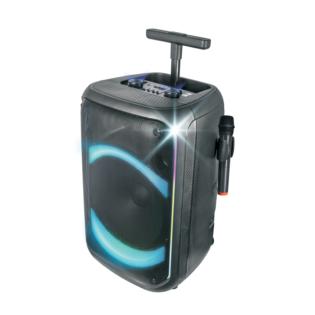 Uno speaker versatile e comodo da trasportare grazie al peso contenuto e al sistema trolley. E' alimentato da una batteria ricaricabile interna in grado di garantire ore di funzionamento. La parte frontale incorpora dei led RGB che illuminano la cassa con varie combinazioni. L'illuminazione può comunque essere spenta. La confezione include, oltre al telecomando, un microfono a filo e un radiomicrofono. Il pannello di comando offre numerose regolazioni, effetto eco e lettore Mp3. E' possibile collegare il proprio smartphone tramite Bluetooth.