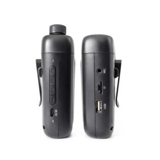Compatto e leggero, ma estremamente potente. Può essere facilmente fissato a cintura. E' ricaricabile e offre un'autonomia fino a 5 ore. Basta inserire il microfono ad archetto nell'apposita presa per renderlo pronto all'uso. Dispone di comando volume e di lettore USB/microSD per la riproduzione di brani Mp3. E' in grado di collegarsi a smartphone o tablet tramite bluetooth. Estremamente potente, è ideale per insegnanti, allenatori, guide turistiche, conferenze e per chiunque necessiti di un dispositivo piccolo ed efficace per amplificare la propria voce. La batteria incorporata si ricarica tramite cavetto USB-C
