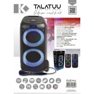 Microfono a filo e telecomando inclusi. Si ricarica tramite normale presa USB grazie al cavo in dotazione TYPEC