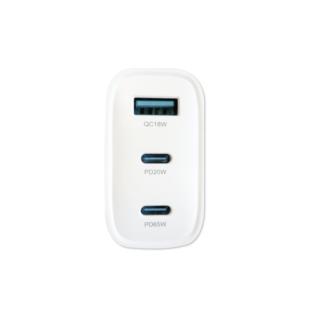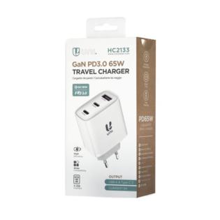 Dispone di 2 porte USB Tipo-C e una porta USB-A standard. La velocità di ricarica è pari a 18W (QC) ma arriva fino a 65W (PD) permettendo di ricaricare velocemente ogni tipo di apparecchio.