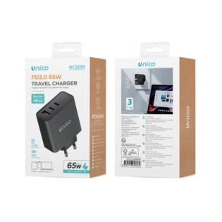 Alimentatore da viaggio compatto e potente, in grado di ricaricare contemporaneamente tutti i vostri apparecchi. Ha una potenza di ben 65W e offre 2 porte USB TipoC e una porta USB-A standard. Si adatta automaticamente a tensioni 110V o 220V offrendo alle porte in uscita la massima potenza disponibile. Le due porte Type-C sono compatibili PD a 65W mentre la porta USB-A è compatibile con lo standard Quick Charge da 30W.