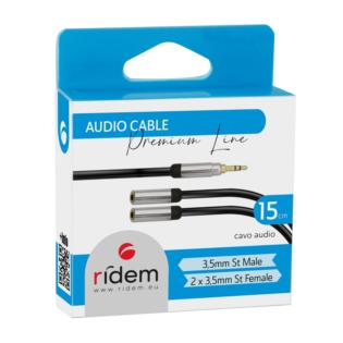 Cavo audio da 15cm con spina 3,5 mm stereo e 2 prese da 3.5mm stereo. Ideale per sdoppiare i segnali audio provenienti dai lettori MP3, Lettori CD, smartphones etc.