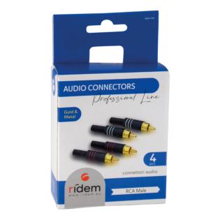 La confezione include 2 coppie di connettori RCA realizzati in metallo e placcati oro per la massima connettività . Adatti a cavi audio con sezione fino a 6mm e destinati ad utilizzi professionali.