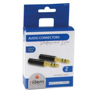 Coppia di connettori 6,35 mm STEREO dorati. Utilizzati generalmente per cavi audio stereo o cavi cuffia. Sono realizzati in metallo per la massima resistenza in usi intensivi.