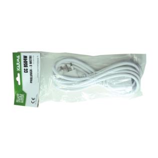 Cavo di prolunga elettrico da 3mt di colore bianco. Presenta ai due capi del cavo una spina 16A e una presa bipasso 10A/16A.