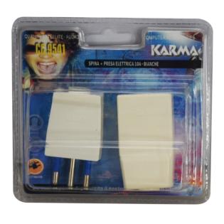 In un unico blister sono racchiusi una presa e una spina elettrica pronte per essere installate su cavo elettrico. Dispongono di 3 contatti e sono realizzate in materiale plastico di colore bianco. Potenza 10A.