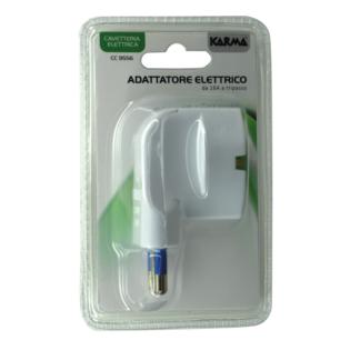 Speciale adattatore che permette di connettere ad una presa tripolare 16A una spina schuko, 10A o 16A. La particolare forma di questo adattatore permette di non occupare, una volta inserito nella presa elettrica, la presa accanto. Un oggetto che dovrebbe essere presente in ogni abitazione.