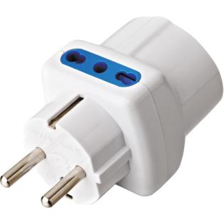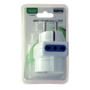 Speciale adattatore che permette di trasformare due prese bipasso 10/16A e una presa tripasso in spina schuko. max 1500W