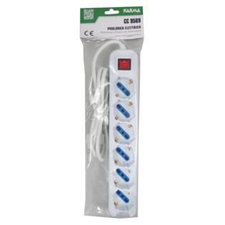 Prolunga multipresa con 6 prese tripasso 10/16A e tipo Schuko. Interruttore generale di sicurezza. La spina è da 16A.
