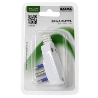 Spina 2P+T da 10A al quale è possibile giuntare un normale cavo elettrico a 3 fili.