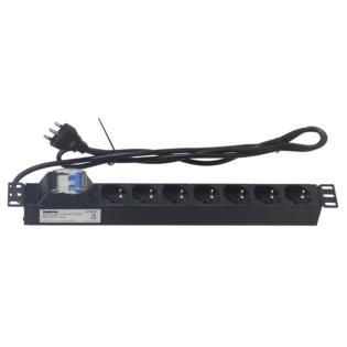 Multipresa professionale destinata ad essere inserita a rack 19". Incorpora 7 prese tripasso (10A, 16A, e shuko) per il collegamento di tutti i vostri apparecchi alloggiati nel rack. Una doppia protezione contro cortocircuiti proteggerà i vostri apparecchi da accidentali sovraccarichi. Le prese sono "children safe". Il cavo è di tipo 3Gx1,5mm2 con spina da 16A.