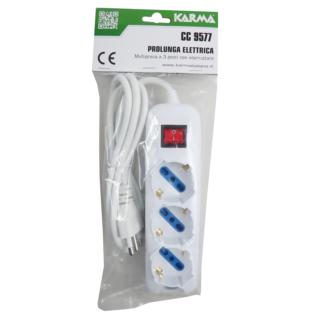 Classica prolunga elettrica applicabile anche a tralicci o strutture tubolari grazie al foro per fascette. Dispone di tre prese bipasso in grado di accettare spine 10A, 16A e shuko. Un tasto permette di interrompere l'alimentazione. Il cavo è da 1,5mt con spina 16A.