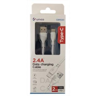 Cavo da 2mt con connettore USB e USB Tipo C. Adatto sia alla ricarica che al trasferimento dati. In grado di ricaricare a 2,4A