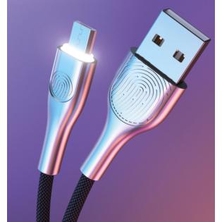 Nel momento in cui si tocca il connettore, la luce si accenderà agevolando l’inserimento del connettore al buio. Anche il design dei connettori è unico e ricorda le impronte digitali. Carica ad alta velocità . Il cavo è lungo 120cm con connettore di tipo Micro USB e supporta ricarica fino a 3A. Il cavo dispone di laccetto per tenerlo correttamente arrotolato.