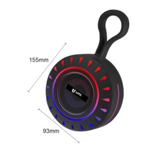 Conforme allo standard IPX5 risulta impermeabile e adatto all'utilizzo all'aperto. Il Bluetooth di ultima generazione ver. 5.3 garantisce una connessione immediata e un basso consumo. Il tempo in standby è di ben 300 ore. Un sistema di illuminazione a led rende il prodotto accattivante. Dispone di lettore per microSD.