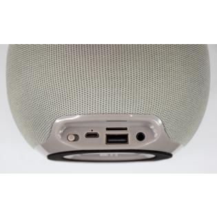 Simpatico speaker ricaricabile dalla forma sferica e curato nei dettagli che ne caratterizzano la qualità . Per non rovinarne l'estetica, i comandi sono stati posti nella parte inferiore. La parte superiore incorpora un woofer e presenta un pratico laccetto gommato per la facile presa nel trasporto. E' rivestito in tessuto colorato. Incorpora un ricevitore bluetooth 5.0 ma può anche riprodurre brani MP3 dirattamente da chiavette USB. Possiede addirittura una presa standard 3,5mm. Offre funzione di radio FM e di vivavoce. Grazie al microfono incorporato permette di rispondere alle chiamate in arrivo. La batteria interna si ricarica in sole 3 ore tramite il cavo microUSB incluso e offre una autonomia di oltre 4 ore.