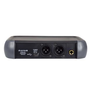 La base ricevente è alimentata da una comune presa USB(cavo e alimentatore in dotazione). Grazie a questa peculiarità è collegabile a diffusori amplificati, a mixer, power bank, notebook o a qualsiasi apparecchio disponga di presa USB. Altra caratteristica esclusiva è di poter cambiare la frequenza operativa(16 canali disponibili) direttamente dal microfono senza doverlo fare sulla base. Le pratiche prese sia XLR che tramite Jack 6,3mm consentono il collegamento della ricevente nel modo più semplice e professionale.
