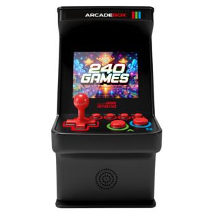 Il classico cabinet di videogioco da bar anni 80 ma in versione miniaturizzata. Alto solo 16cm offre una completa postazione di gioco con tanto di joystick e di tasti funzione. Incorpora ben 240 giochi a 8bit e opera in autonomia grazie a 3 batterie di tipo AA (non incluse). Un piccolo altoparlante completa l'esperienza di gioco con audio accattivante e possibilità di regolarne il volume.