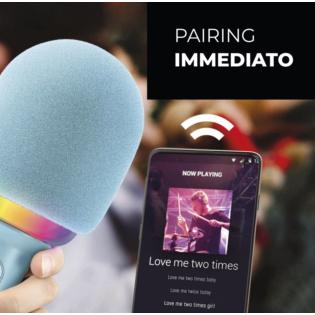 Straordinario microfono in grado di animare le vostre serate tra amici e di divertirvi cantando i vostri brani preferiti. Si collega ad uno smartphone o tablet tramite bluetooth per ricevere la musica tramite le app preferite. Basterà poi cantare normalmente e la propria voce verrà miscelata alla musica e amplificata dal microfono stesso. Alcuni tasti posti sul microfono consentono di regolare il livello di volume, eco, scegliere l'effetto luce desiderato o spegnerlo. E' presente persino un voice-changer che modificherà la vostra voce in tempo reale con effetti esilaranti. Sul fondo dell'impugnatura sono presenti, oltre ad uno slot per microSD, una presa cuffia e una presa USB di tipo-C, sia per la ricarica della batteria interna sia per il collegamento a smartphone compatibili ai quali verrà inviato il segnale audio per poterlo ad esempio registrare tramite app specifiche. Che siate soli o in compagnia questo microfono vi stupirà rendendo straordinaria la più noiosa delle serate.