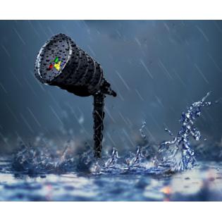 Effetto luce laser da esterno, impermeabile (IP65). E' munito di picchetto per essere piantato in giardino, nonché di una pratica basetta per appoggiarlo ovunque o appenderlo in verticale. Ideale per l'illuminazione di facciate di abitazioni, pareti e ampie superfici di qualunque tipo. All'accensione verranno generati centinaia di fasci laser proiettati ad ampio raggio, per creare un effetto unico e spettacolare. I diodi laser di colore verde e rosso sono di alta qualità e garantiscono una resa ottimale. Può essere impiegato per le tradizionali decorazioni natalizie, ma anche per animare feste all'aperto,