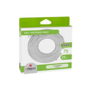 Matassa da 25mt di cavo d'antenna adatto sia a TV che a decoder satellitari. Di colore bianco, presenta un'impedenza di 75 Ohm, ottimale per i cablaggi video di media distanza. Nella confezione sono presenti 4 connettori di tipo SAT che possono essere applicati direttamente al cavo.