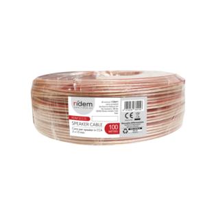 Cavo trasparente con sezione 2 x 1,5mm destinato al collegamento di diffusori e altoparlanti. 100mt