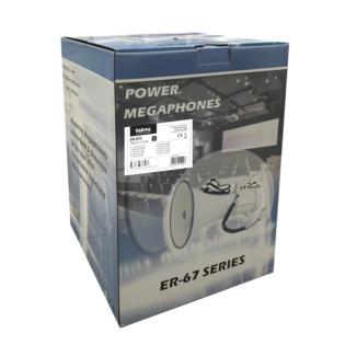 La grande tromba esponenziale e il potente amplificatore da 40 Watt fanno di questo megafono portatile un formidabile strumento di diffusione. Il microfono dispone di cavo estendibile, di regolazione volume e di pulsante con blocco per funzionamento continuo. La cinghia per il trasporto a spalla consente il posizionamento nei più diversi luoghi mentre le batterie che lo alimentano garantiscono una autonomia di circa 5/7 ore, che è possibile rendere illimitata grazie alla presa per alimentazione esterna a 12 Volt (cavo di alimentazione da accendisigari incluso). Dispone di funzione sirena per segnalare situazioni di emergenza o richiamare l'attenzione.Ideale per operare in grandi aree, copre una distanza di oltre 1 Km. Tromba da 30cm