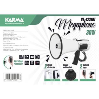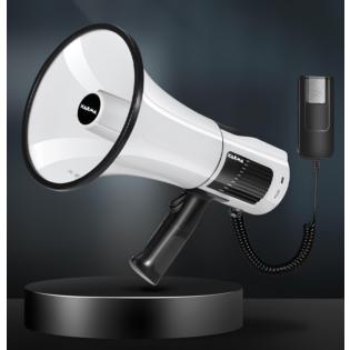 Megafono di alta potenza e di ultima generazione. Con i suoi 30W è udibile fino a 800 metri di distanza. Le batterie (18650) sono incluse e ricaricabili tramite connettore USB Type-C sul lato del megafono e garantisce una lunga autonomia.