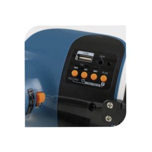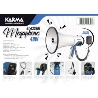 Oltre alla voce può amplificare dei messaggi registrati nella memoria interna (fino a 15 minuti), memorizzati in chiavette o schede micro SD ma anche provenienti da uno smarphone tramite bluetooth. Dispone anche di una presa 3,5mm per segnale esterno. tromba 23cm