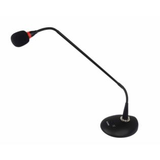 Microfono da tavolo a condensatore adatto ai più svariati impieghi, dalla chiesa alla sala conferenza. Dispone di doppio snodo con un interruttore meccanico sulla base e cavo da 8mt con connettore XLR/xlr. Può essere alimentato sia da batterie che da alimentatore Phantom.