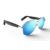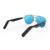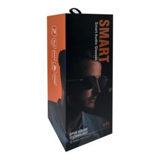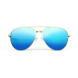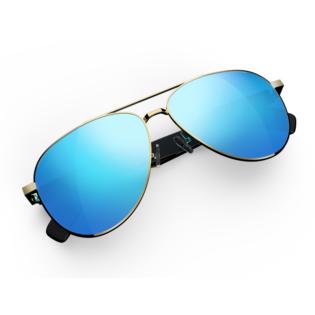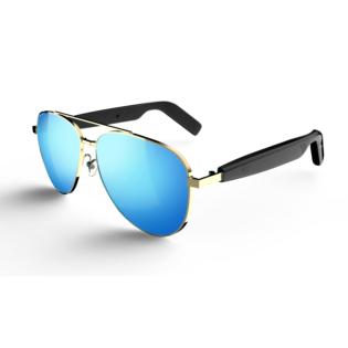 Occhiali da sole smart in stile Aviator. Montano lenti anti UV e UVB in grado di proteggere gli occhi dai dannosi raggi solari. La montatura è in metallo dorato con lenti a specchio con riflessi viola/blu. Le astine incorporano due altoparlanti, batteria e ricevitore bluetooth per la riproduzione di musica proveniente dal proprio smartphone. Tramite comandi touch è possibile scegliere la traccia desiderata o attivare l'assistente vocale dello smartphone. Si ricaricano tramite cavo UBS incluso e sono forniti di custodia protettiva. Stile e originalità in un oggetto tecnologico.