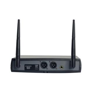 Radiomicrofono compatto ed efficiente comprensivo di doppio trasmettitore palmare. Dispone di 48 canali per poter operare in ogni condizione. La portata è di circa 30mt con ottima resa acustica sia sul parlato che nel canto. La base ricevente possiede 2 prese di tipo XLR indipendenti per ogni canale e una presa mixata di tipo 6,3mm.