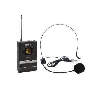 Radiomicrofono compatto ed efficiente comprensivo di doppio radiomicrofono: uno palmare e l'altro da cintura con microfono ad archetto. Dispone di 48 canali per poter operare in ogni condizione. La portata è di circa 30mt con ottima resa acustica sia sul parlato che nel canto. La base ricevente possiede 2 prese di tipo XLR indipendenti per ogni canale e una presa mixata di tipo 6,3mm.