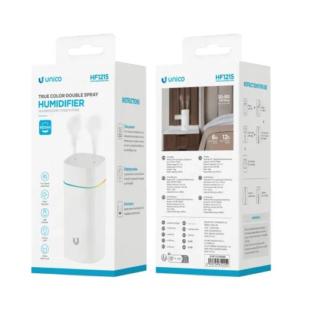 Umidificatore per ambiente con doppio emanatore e serbatoio in grado di contenere fino a 600 ml di acqua. Assolutamente silenzioso si presta all'utilizzo anche in ambito domestico. Un tasto permette di selezionare la modalità continua o intermittente ogni 3 secondi.