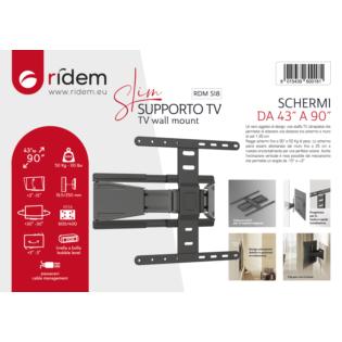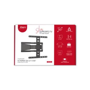 Regge schermi fino a 90" e 50Kg di peso. Lo schermo potrà essere allontanato dal muro fino a 25cm e ruotato orizzontalmente per una perfetta visione. Anche l'inclinazione verticale è resa possibile dal meccanismo che permette un angolo da -15° a +3°