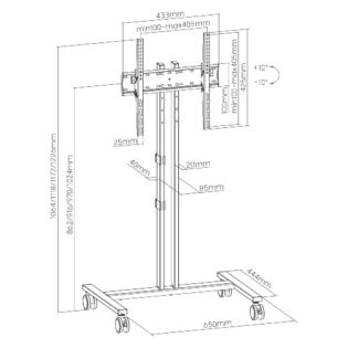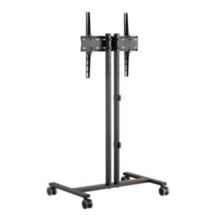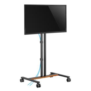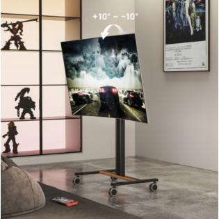 Le ruote di questo supporto TV sono grandi e flessibili e non graffiano il pavimento durante gli spostamenti. La staffa è in grado di accogliere schermi da 34" a 55" con inclinazione da -10° a +10° per evitare fastidiosi riflessi.