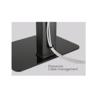 Esteticamente molto gradevole, nasconde i cavi al suo interno. E' possibile regolare l'altezza su 3 divesi livelli e una volta fissato, lo schermo potrà essere ruotato di 35° sia a destra che a sinistra.