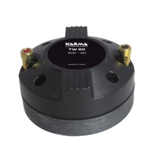 Tweeter dinamico con attacco a vite standard da 3,5cm. Ideale per l'utilizzo in abbinamento a trombe e casse acustiche. Realizzato in materiale metallo e plastica, opera in 8 Ohm e ha una potenza massima di 60W e RMS 30W diametro 80mm