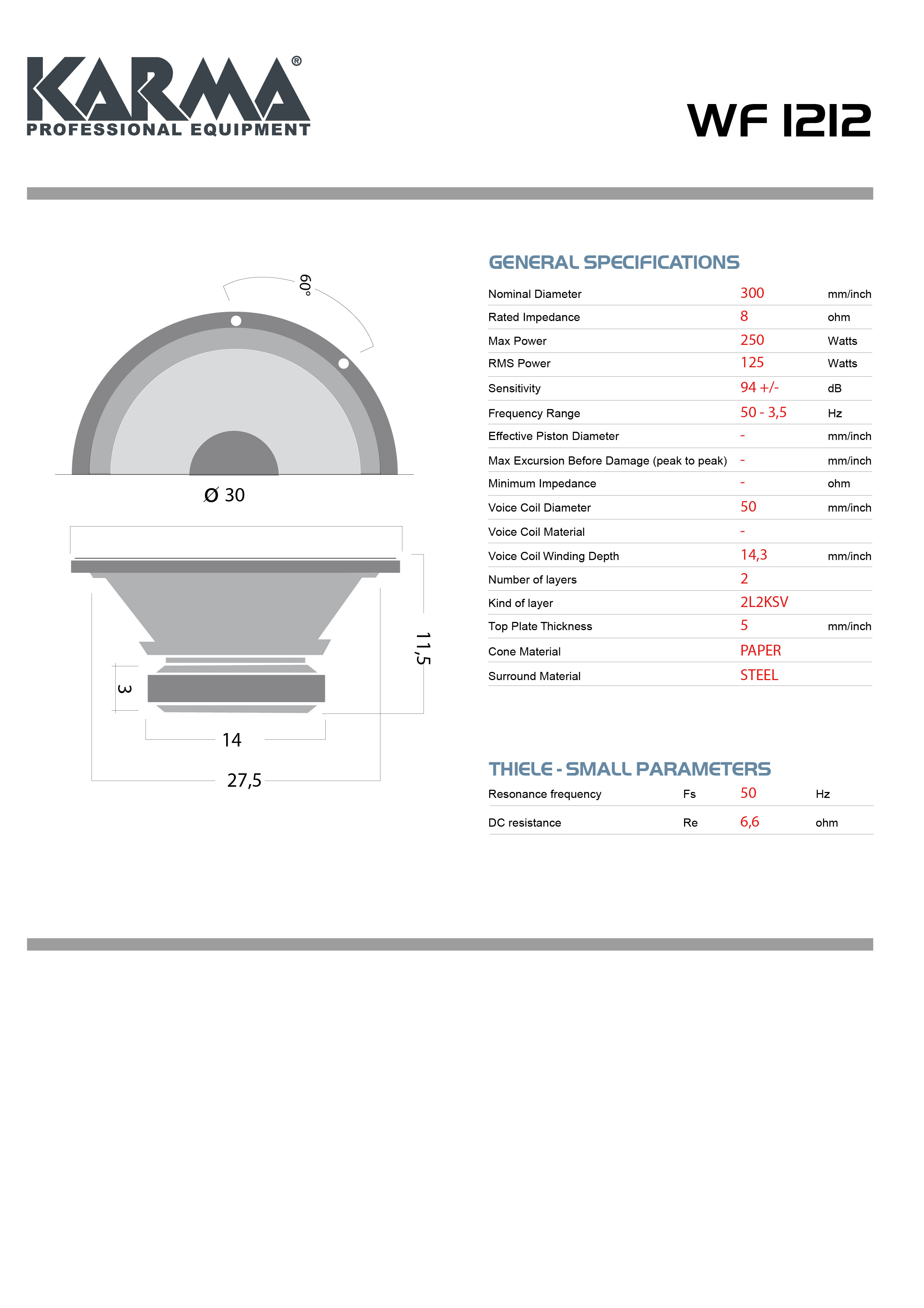 Woofer con diametro di 12" operante a 8 Ohm in grado di fornire una potenza massima di 250W. Ideato per l'installazione in diffusori o impianti audio di qualsiasi genere. Ottima resa acustica.